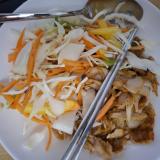 여기에 지겨운 양배추 샐러드인데 귀찮아서 드레싱 없이 그냥 먹었다.