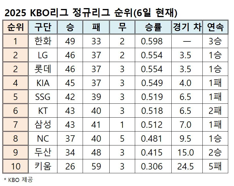 2023년 6일 현재 프로야구 순위표에 대한 기사입니다. 각 팀의 승패 기록과 함께 현재 리그 순위가 정리되어 있으며, 팀별 주요 선수들의 퍼포먼스 및 향후 경기 일정에 대한 간략한 정보도 제공됩니다. 팀들은 치열한 경쟁을 벌이고 있으며, 팬들은 팀의 성적에 따라 기대감과 긴장감을 느끼고 있습니다. 각 팀의 전력 강화를 위해 트레이드와 파업 등의 소식도 주목받고 있습니다.