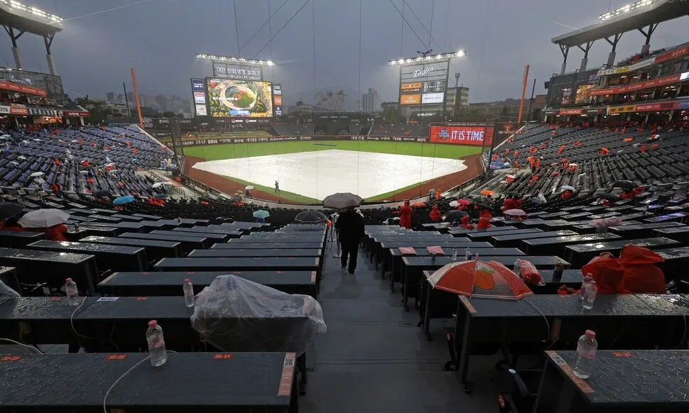 프로야구 PO 1차전 우천취소…박진만 “삼성이 비 몰고 다니네요”